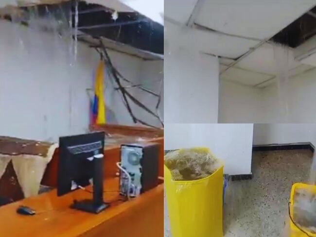 En videos quedó registrado el momento en que por las precipitaciones el techo de algunos salones se vino abajo, permitiendo que el agua cayera directamente en el Complejo Judicial.