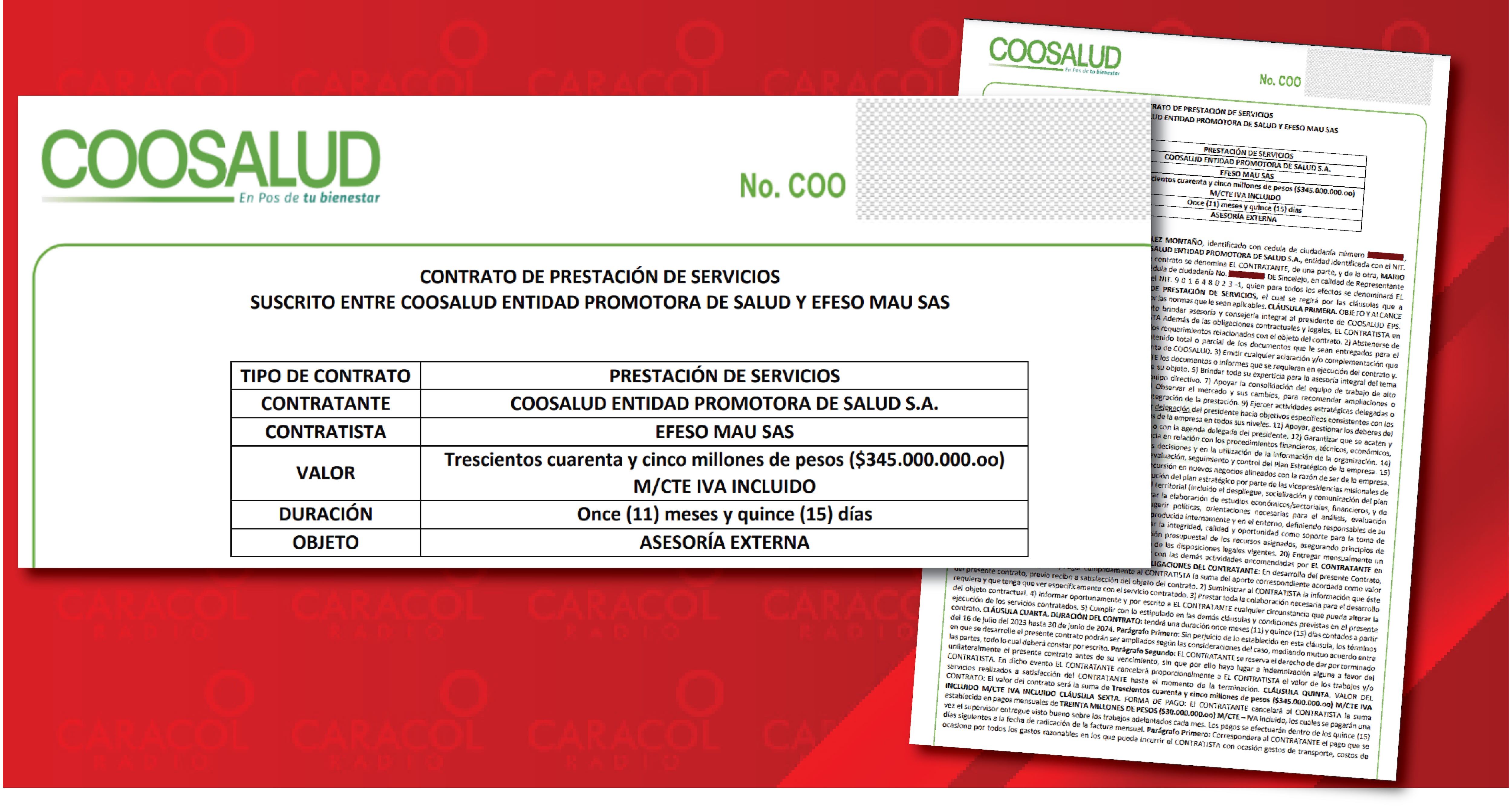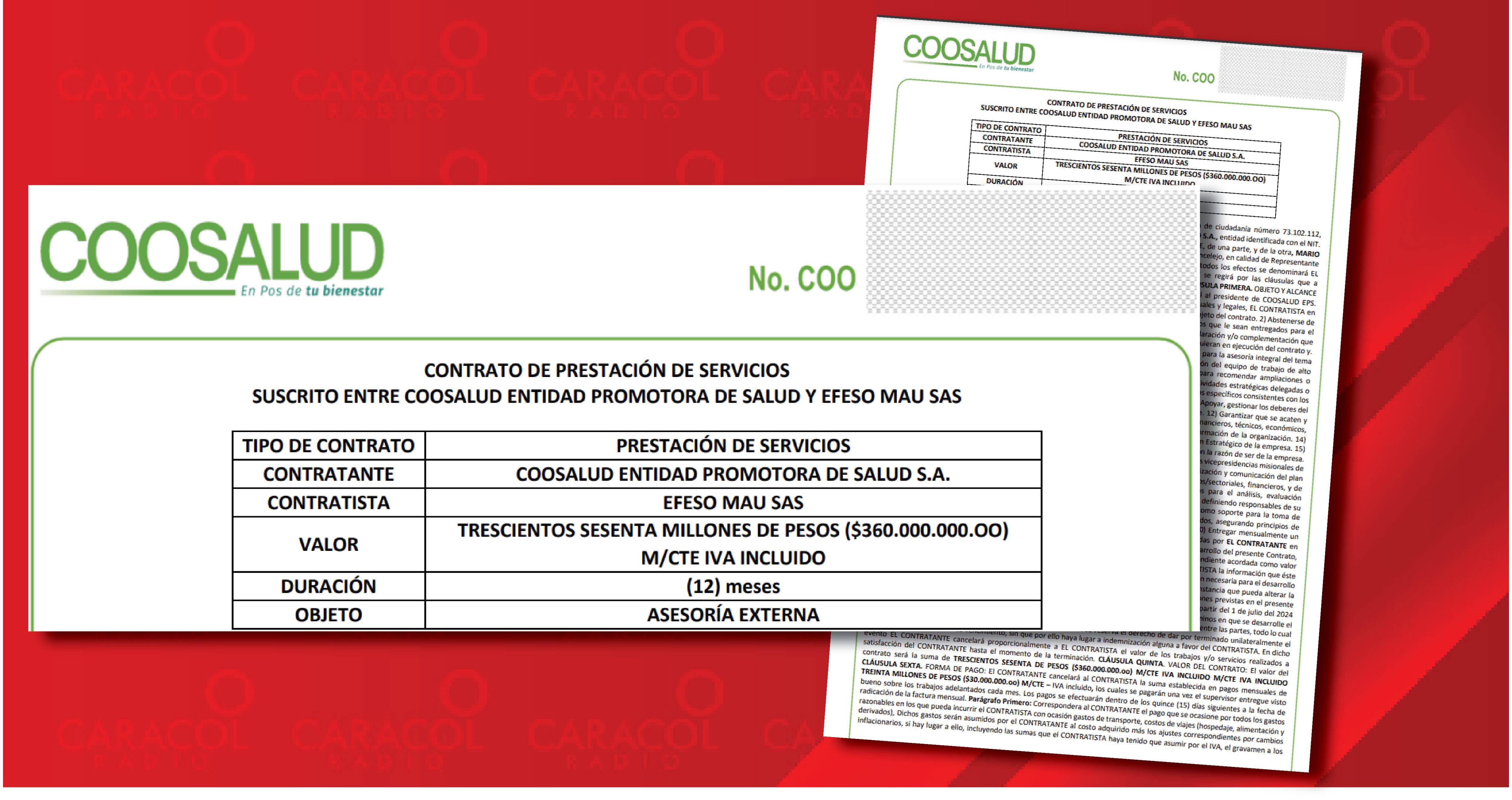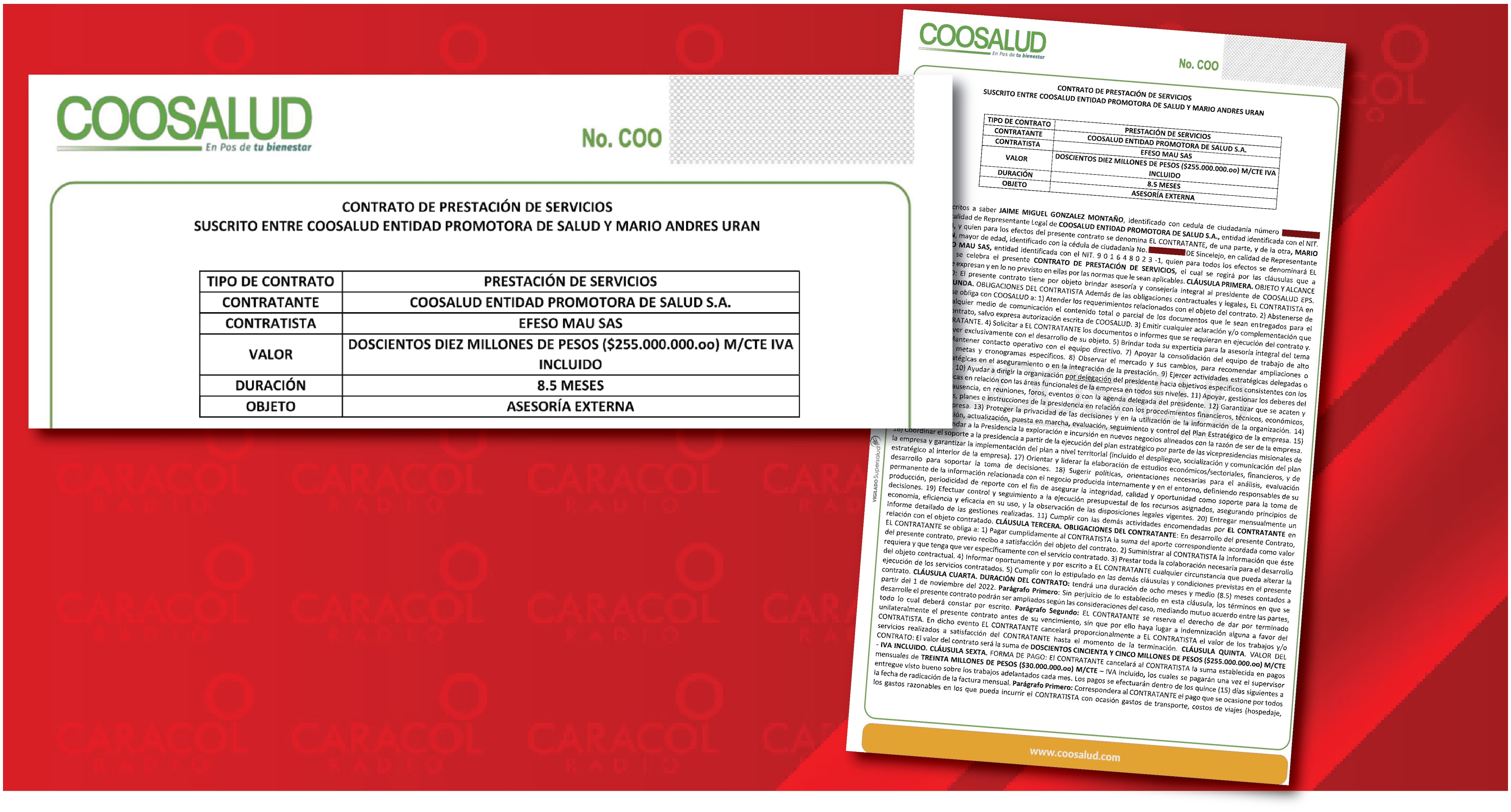 El contrato de Coosalud con EFESO MAU SAS, la empresa de Mario Andrés Urán