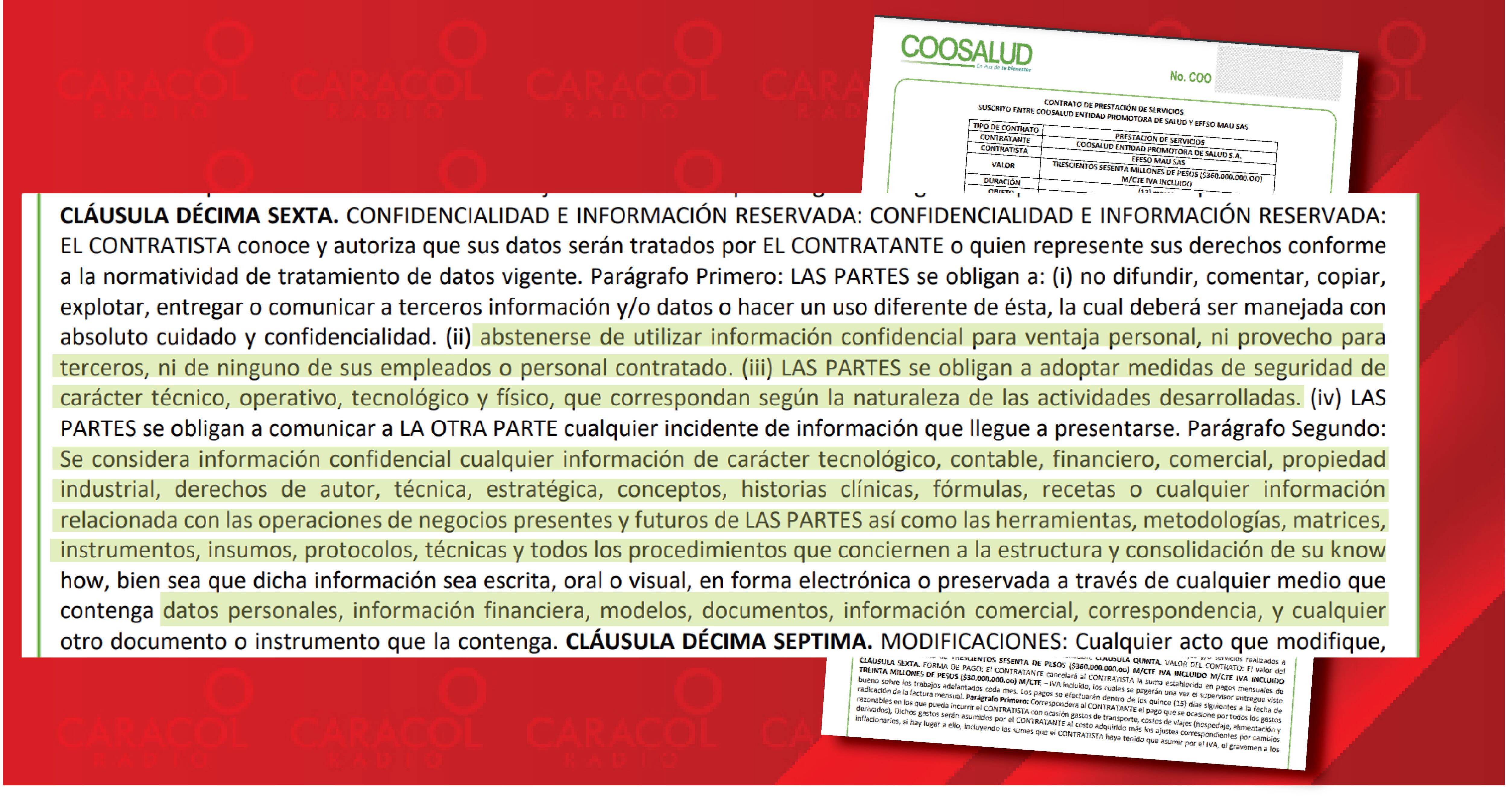 El objeto del contrato prohibía compartir información en beneficio de terceros. Los correos revelados por Caracol Radio indican que, desde Coosalud, Urán presuntamente direccionaba de manera irregular postulaciones de pagos de tres EPS intervenidas