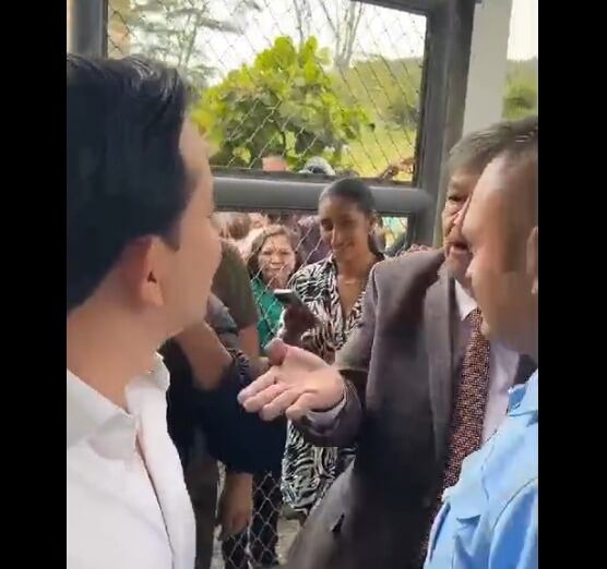 En una primera instancia se escucha la voz del alcalde diciéndole a su sobrino “fuera asqueroso, fuera mentiroso, fuera politiquero”, hasta que fue calmado por la comunidad mientras que el congresista seguía caminando.