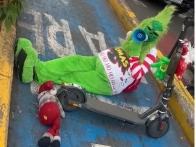El principal enemigo de la Navidad el ‘Grinch’ le cantó la tabla a los motociclistas que diariamente invaden las ciclorrutas en Bucaramanga.