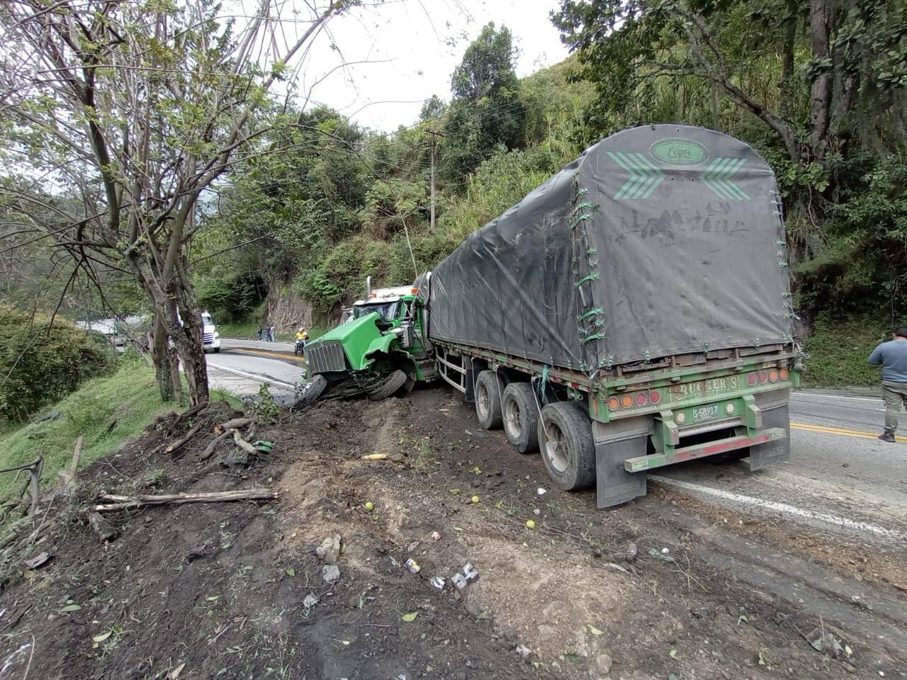 Volcamiento de una tractomula generó un monumental trancón en una vía nacional