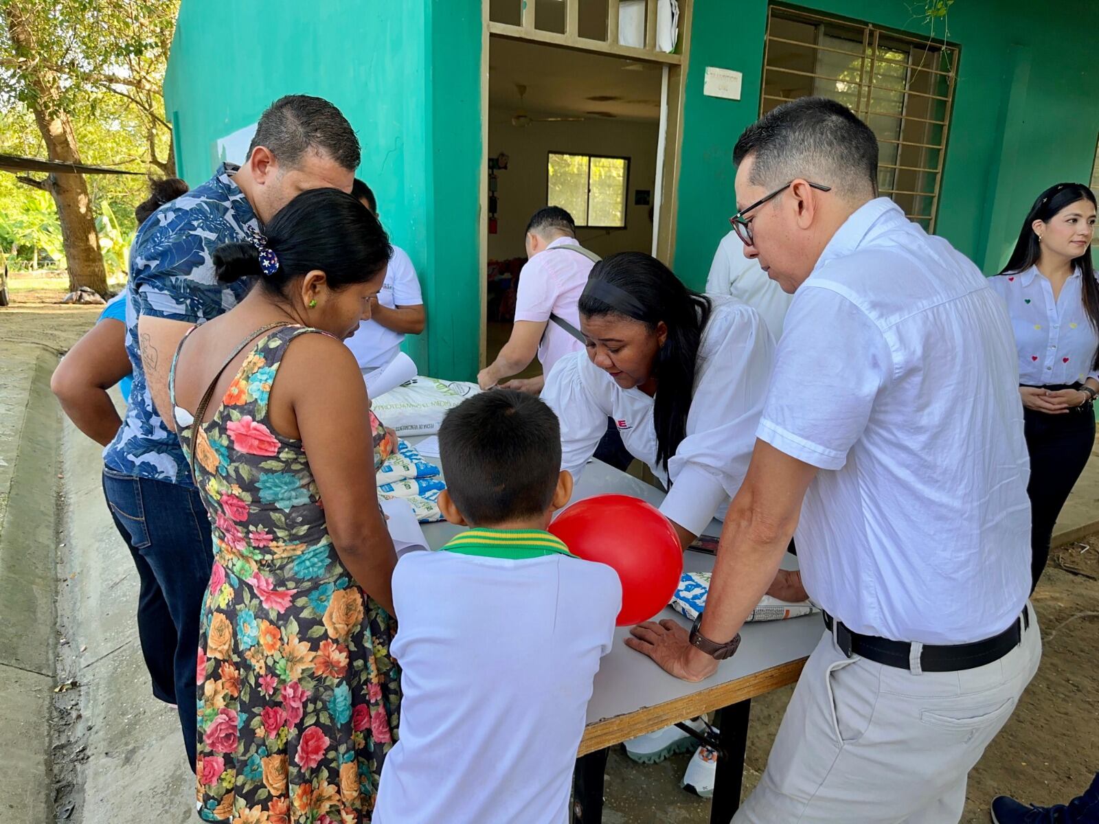La entrega, que inició en la Institución Educativa Técnico Agropecuario La Gallera. y que estuvo presidida por el secretario de Educación Diego Galván Mestra, contó con la presencia de 300 padres de familia aproximadamente que acompañaron a sus hijos que recibieron el beneficio.
