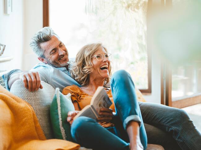 Cheerful mature couple sitting on sofa at home / Westend61