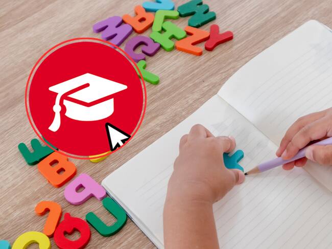 Niño en una clase, dibujando las figuras de las letras en su cuaderno (Getty Images)
