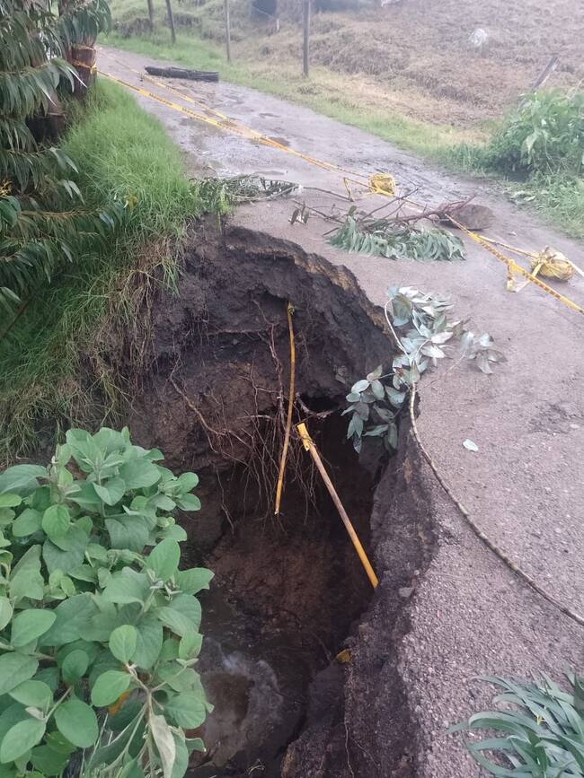 Las fuertes lluvias en Samacá, Boyacá, han provocado caía de banca en las diferentes vías del municipio afectando la transitabilidad de propios y turistas / Foto: Suministrada.