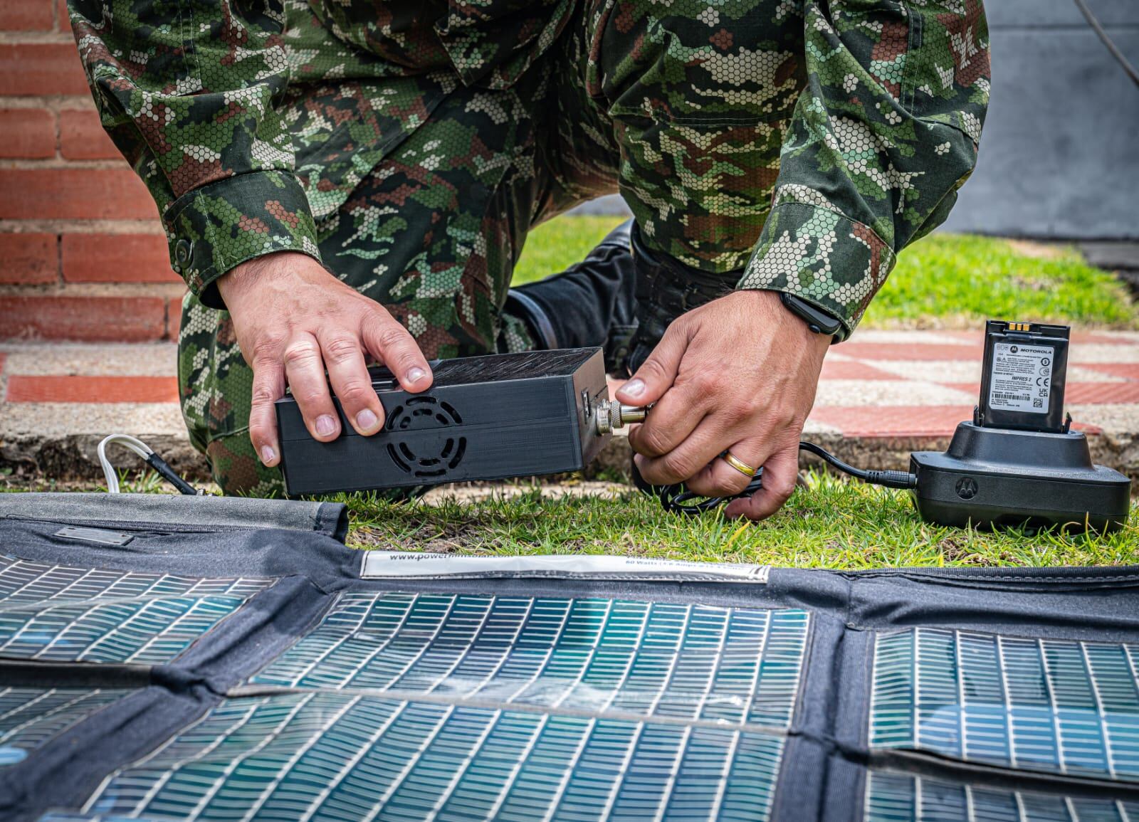 El sistema tiene como objetivo optimizar el uso de baterías en las operaciones militares mediante la integración de energías renovables como la solar y la eólica, garantizando la carga de radios y otros dispositivos en zonas remotas del país o en áreas de operación.