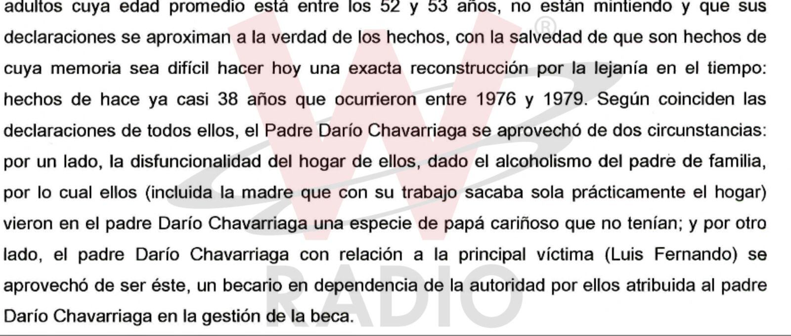 El llamado expediente canónico tiene apenas 28 páginas, muchas de las cuales deben mantenerse en reserva porque contienen los escabrosos detalles de los abusos sexuales cometidos por el jesuita Darío Chavarriaga contra los entonces niños Luis Fernando Llano y sus siete hermanas.