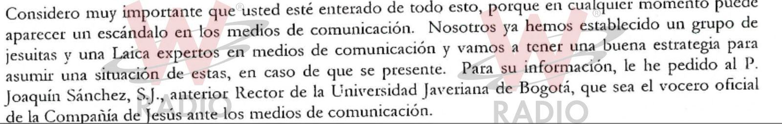 Esto es importante porque en la misma carta Francisco de Roux reconoce que ha consultado con juristas acerca de su posible deber de denunciar los delitos del pederasta: