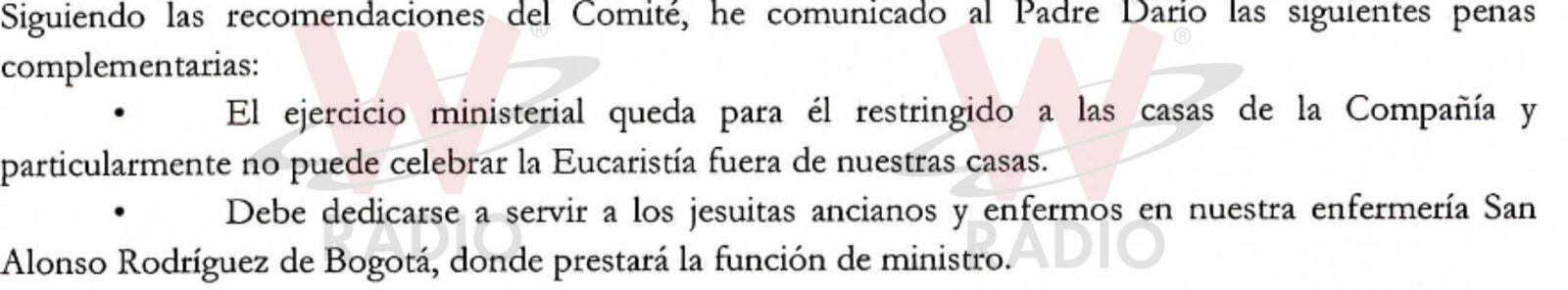 Las sanciones de las que el padre Francisco de Roux habla en su carta al superior general de los Jesuitas no mencionan la palabra “reclusión”, como lo ha usado en recientes declaraciones públicas, sino que se limita a describir el castigo de esta manera:
