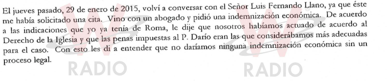 El expediente deja constancia de que el pederasta Chavarriaga aceptó sus abusos contra Luis Fernando Llano apenas un día después de la denuncia. Lo hizo ante el padre Francisco de Roux.