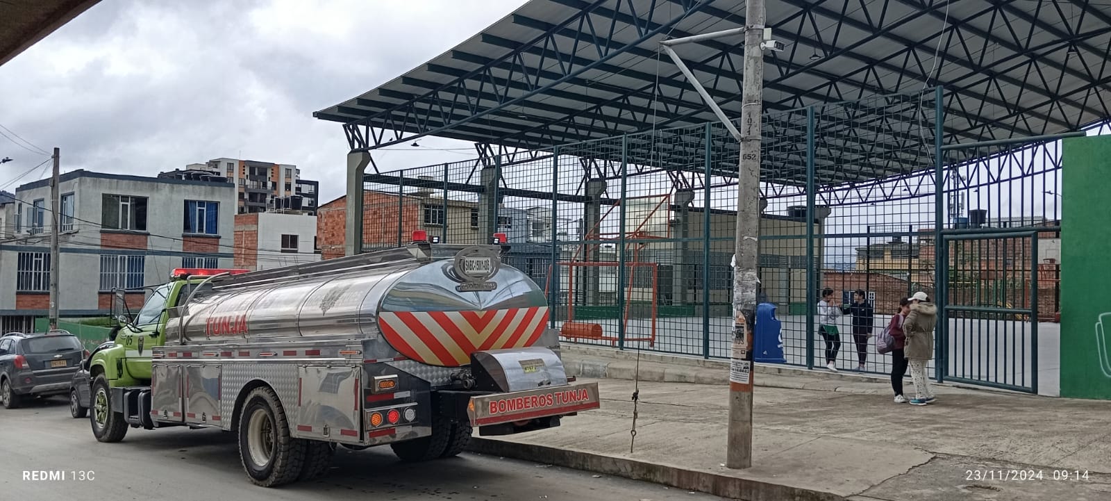 Dos carrotanques de Bomberos Tunja fueron ubicados en la parte alta del barrio Asís y en la Calle 63 carrera 8, Villa Luz, para suministrar agua a los habitantes de este sector / Foto: Suministrada.