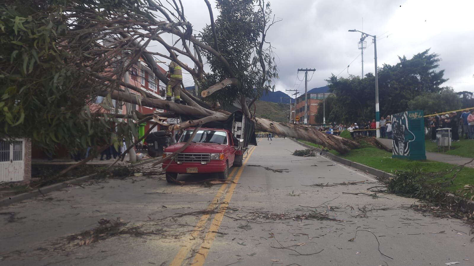 Lluvias en Bogotá: Un árbol cayó sobre un camión en el suroccidente de la ciudad