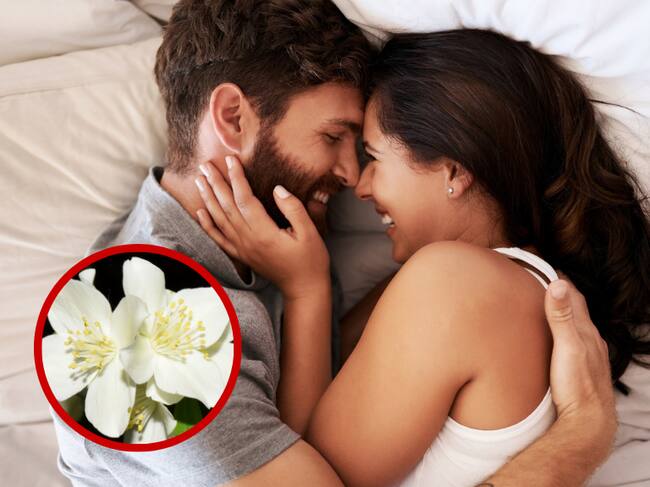 Pareja en una cama // Foto de una planta de jazmín // Getty Images