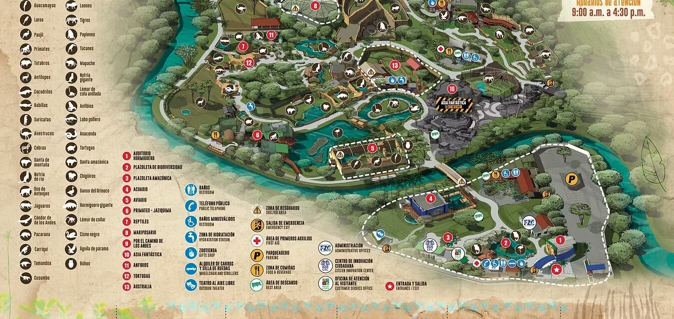 La entrada al Zoológico está abierta al público todos los días de 9:00 a.m. a 4:30 p.m.