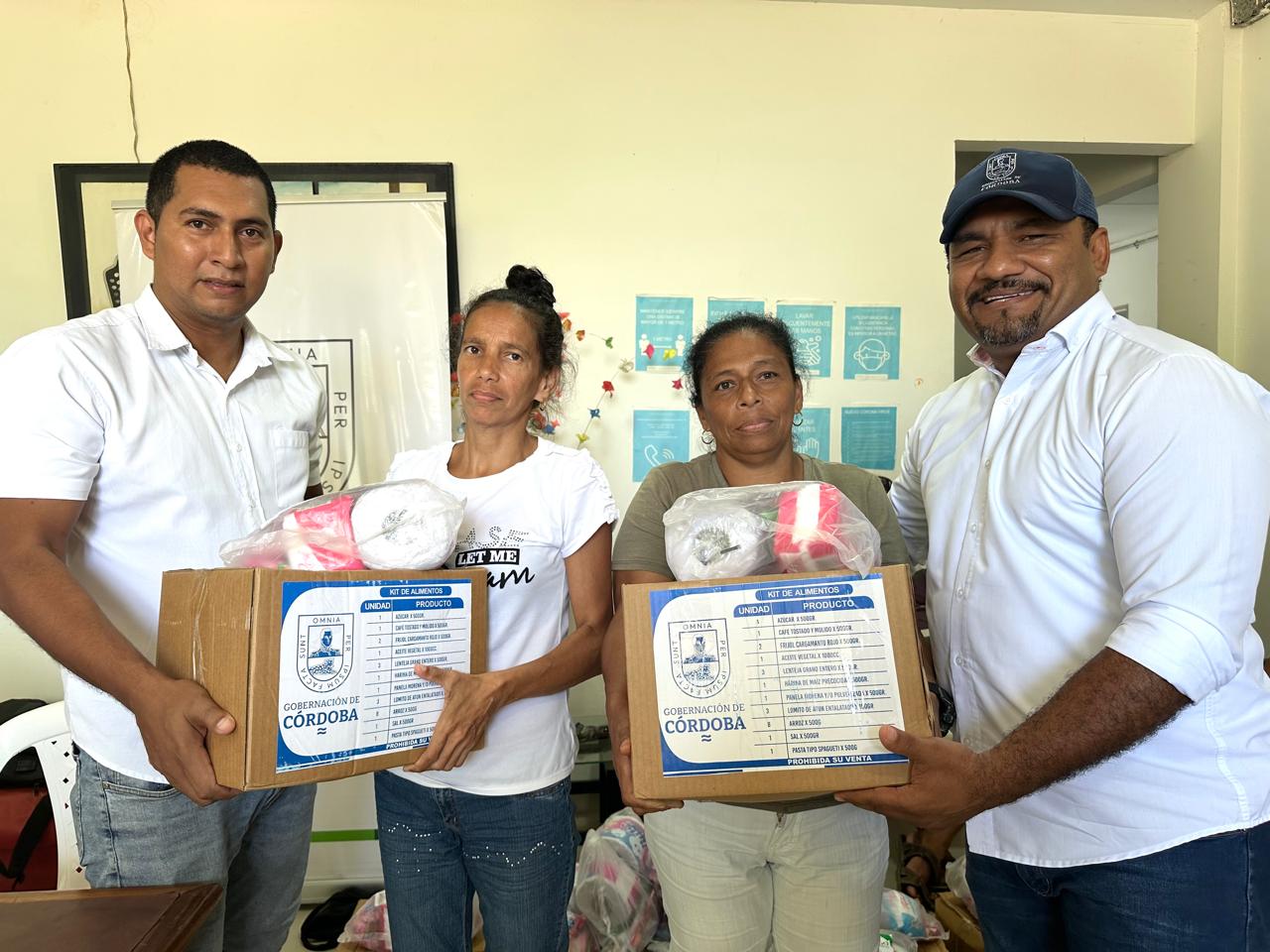 Los municipios que ya han recibido ayudas humanitarias son Cereté, San Pelayo, Lorica, Puerto Libertador, San José de Uré, San Carlos, Canalete, Puerto Escondido, Montelíbano, La Apartada, San Bernardo del Viento, Moñitos, Cotorra y Momil. Aún falta llegar a las comunidades afectadas en Planeta Rica, Buenavista, Tierralta, Valencia, Ayapel, Pueblo Nuevo y Los Córdobas.