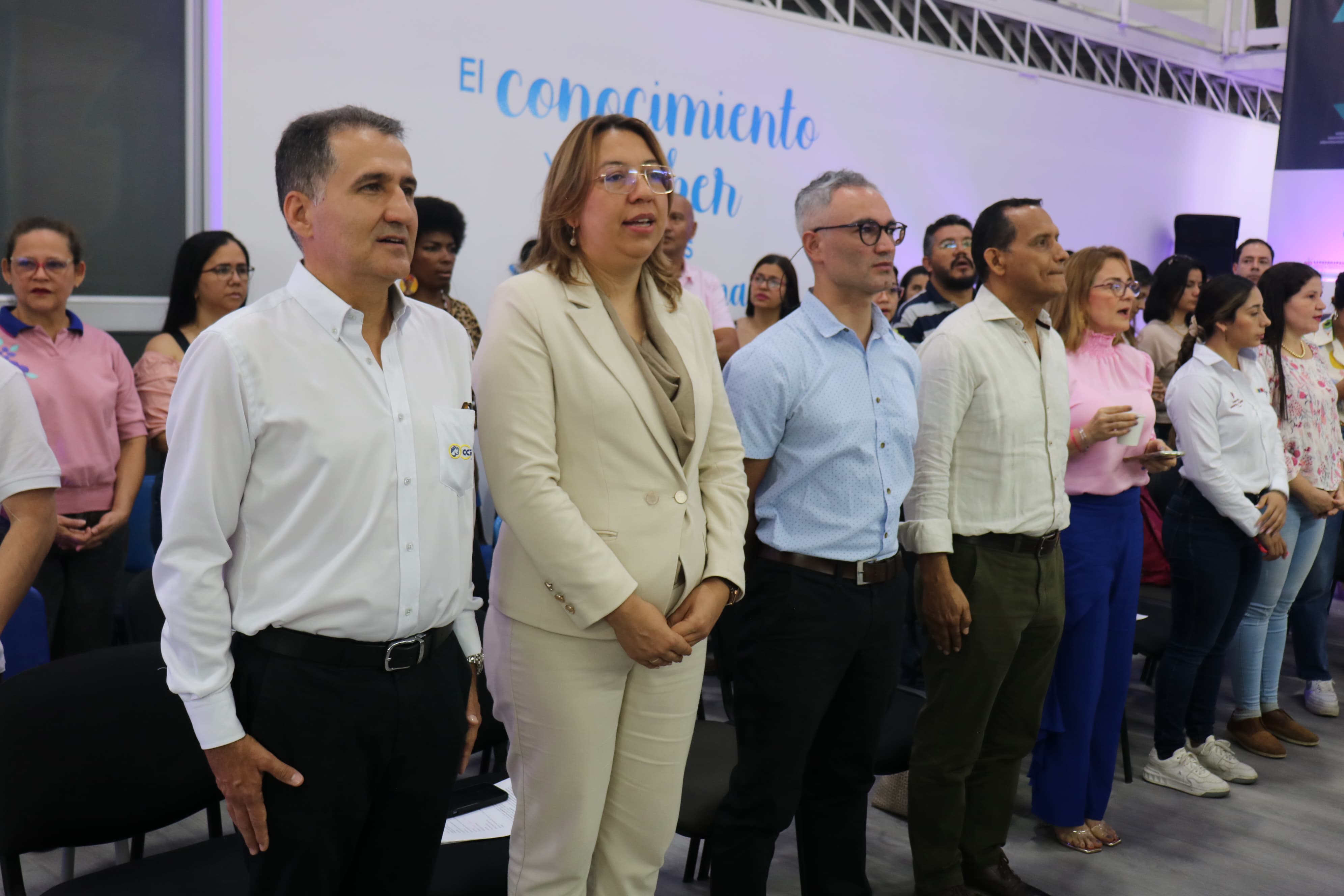 Carlos Hernando Enciso, presidente de la Cámara de Comercio de Ibagué, Carolina Tovar, rectora Uniminuto de Ibagué