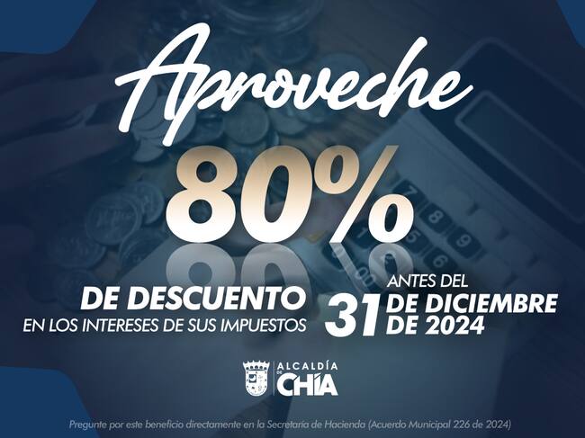 Hasta el 31 de diciembre los deudores podrán obtener un 80% de descuento en los intereses para el pago de Impuesto Predial, de Industria y Comercio y de Publicidad Exterior, gracias a la estrategia Pagar SÍ Paga de la Alcaldía de Chía.