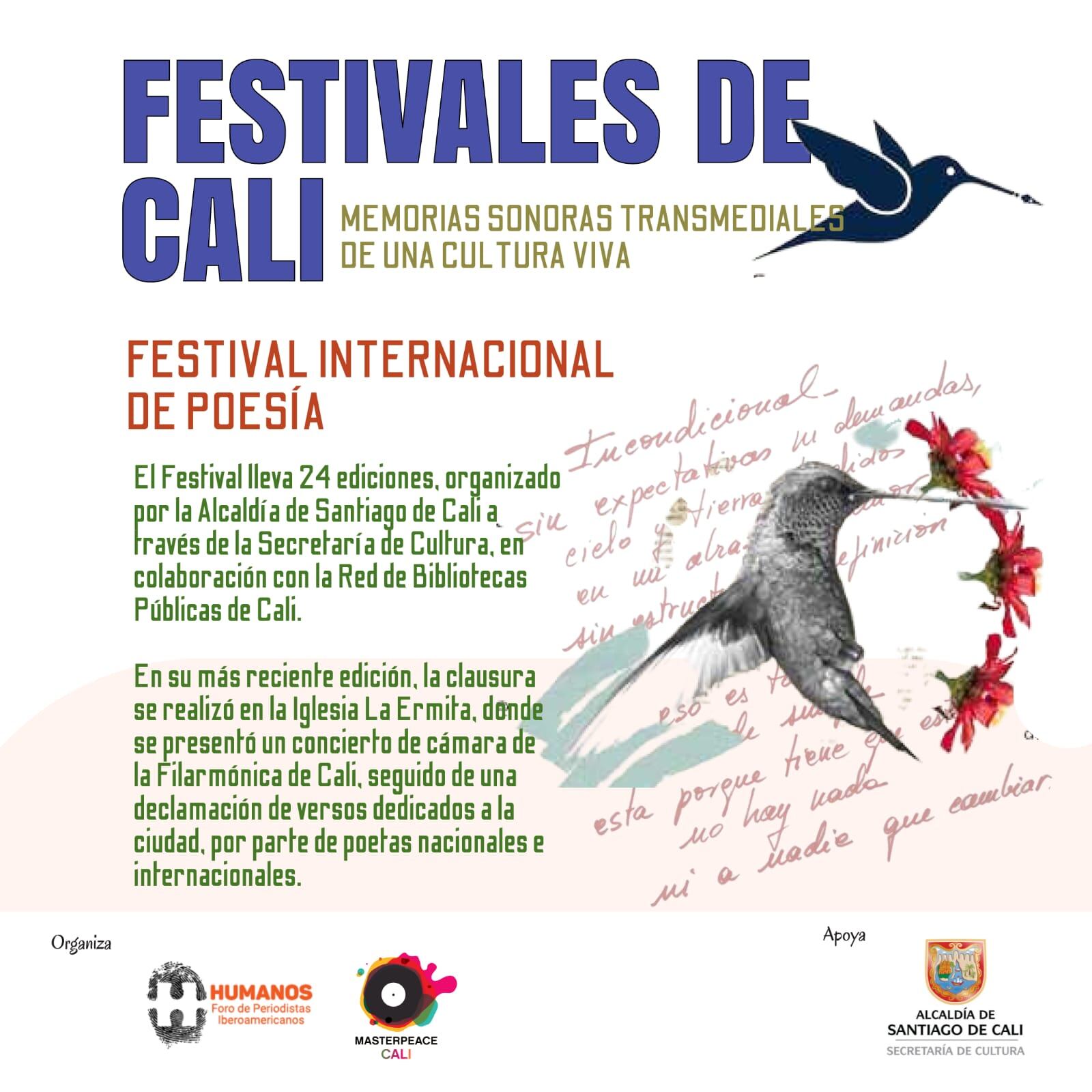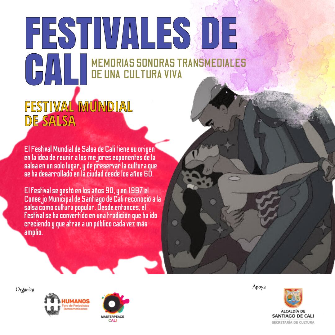 Como un homenaje a la riqueza cultural y artística de Cali a través de una serie de 8 podcasts que invitan a redescubrir y celebrar los festivales más icónicos de la ciudad, reflejando su diversidad como patrimonio inmaterial, se inaugurará este miercoles 4 de diciembre en el Samán del Centro Cultural de Cali, una explosición transmedia que hace parte del proyecto “Festivales de Cali: memorias sonoras transmediales de una cultura viva”, ganador en la categoría de “Periodismo Narrativo” de la Convocatoria Estímulos Cali 2024 de la Secretaría de Cultura de Cali, en colaboración con Foro Humanos y Masterpeace Cali.