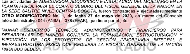 En esa respuesta está la confirmación de la existencia de la excéntrica construcción que para efectos administrativos se llamó “el cuarto seguro del fiscal general de la nación”. Los costos fueron pagados con cargo a un convenio interadministrativo en estos términos: