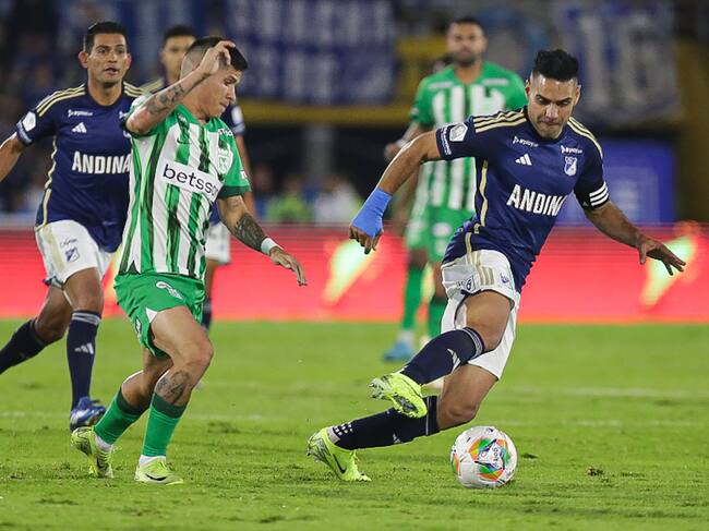 Jorman Campuzano disputa un balón con Falcao García durante el último Millonarios Vs. Nacional. (Colprensa - Cristian Bayona). / Cristian Bayona