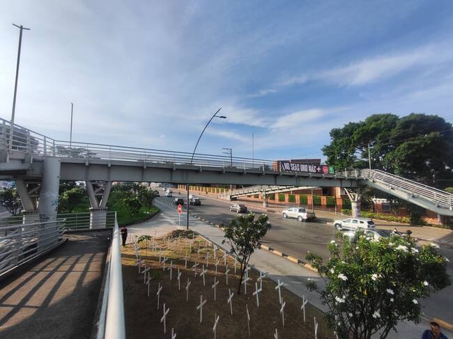 Como acto simbólico ubicaron 350 cruces en una vía principal del área metropolitana de Bucaramanga.