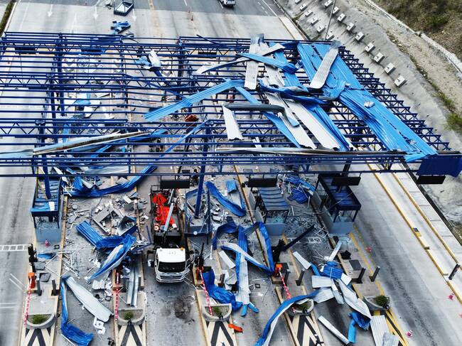 AME3129. PAMPLONITA (COLOMBIA), 04/12/2024.- Fotografía de un peaje afectado por un atentado con explosivos este miércoles, en Pamplonita (Colombia). Al menos tres personas resultaron heridas en un ataque con explosivos perpetrado en el peaje de Pamplonita, ubicado en la carretera entre Cúcuta, capital del departamento colombiano de Norte de Santander (noreste), y la localidad de Pamplona. EFE/ Mario Caicedo / Mario Caicedo