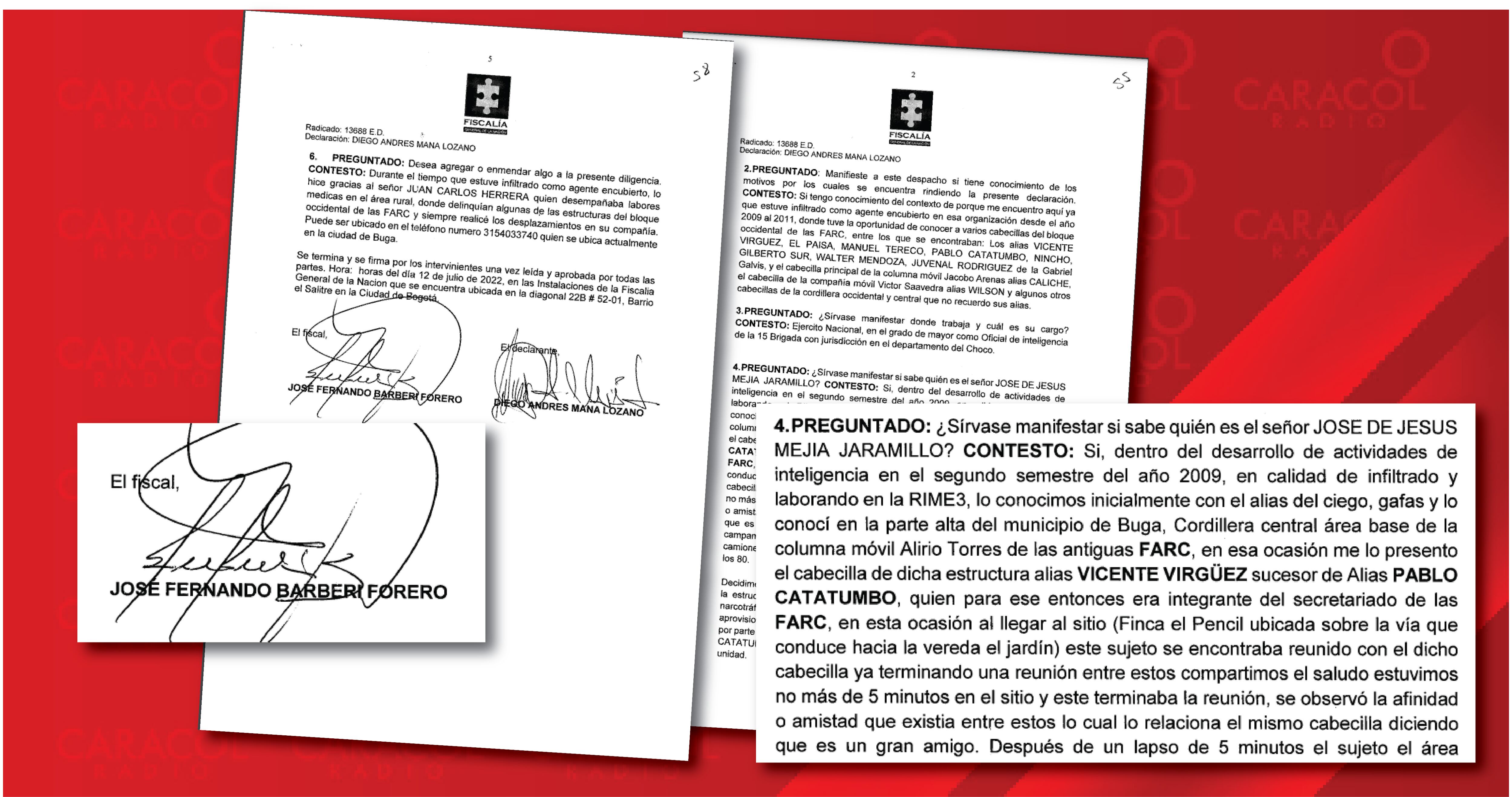 Resulta que, el despacho del fiscal Barberi buscó a ese agente encubierto y 11 años después le tomó una declaración juramentada en la que dijo que, supuestamente, presenció hechos que vincularían a la familia Mejía Jaramillo con las extintas FARC. ((ver documento))