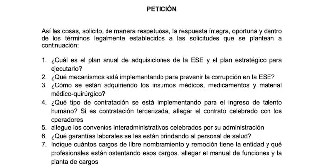 El congresista respondió que no tenía ningún vínculo con Larry Laza y que solo tenía conocimiento de las presuntas irregularidades del hospital, pero a través de otros partidos políticos, de hecho hace un mes, el 5 de noviembre el congresista elevó un derecho de petición en donde solicita información acerca de varios de sus recursos.