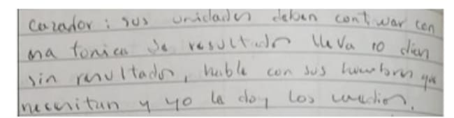 Además fue encontrada la siguiente frase: “recordar que las bajas es lo más importante”.