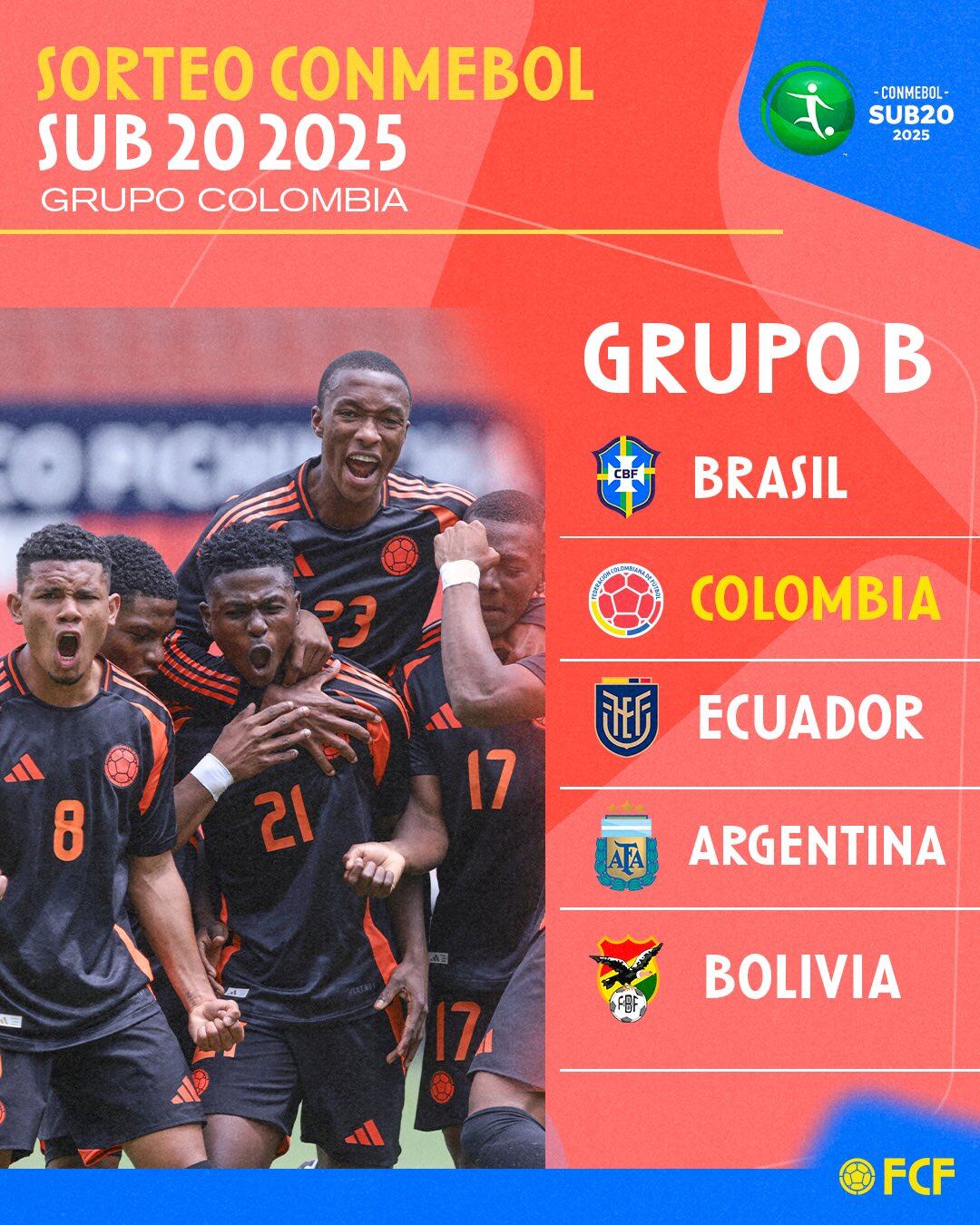 El sorteo ya se había realizado y había dejado que Colombia iba a jugar contra Brasil, Ecuador, Bolivia y Chile, pero tras el cambio de sede, que obligó a cambiar a los cabezas de serie de cada grupo, tuvo que realizarse uno nuevo. La zona quedó similar, pero en lugar de Chile, será Argentina el rival de la Tricolor.