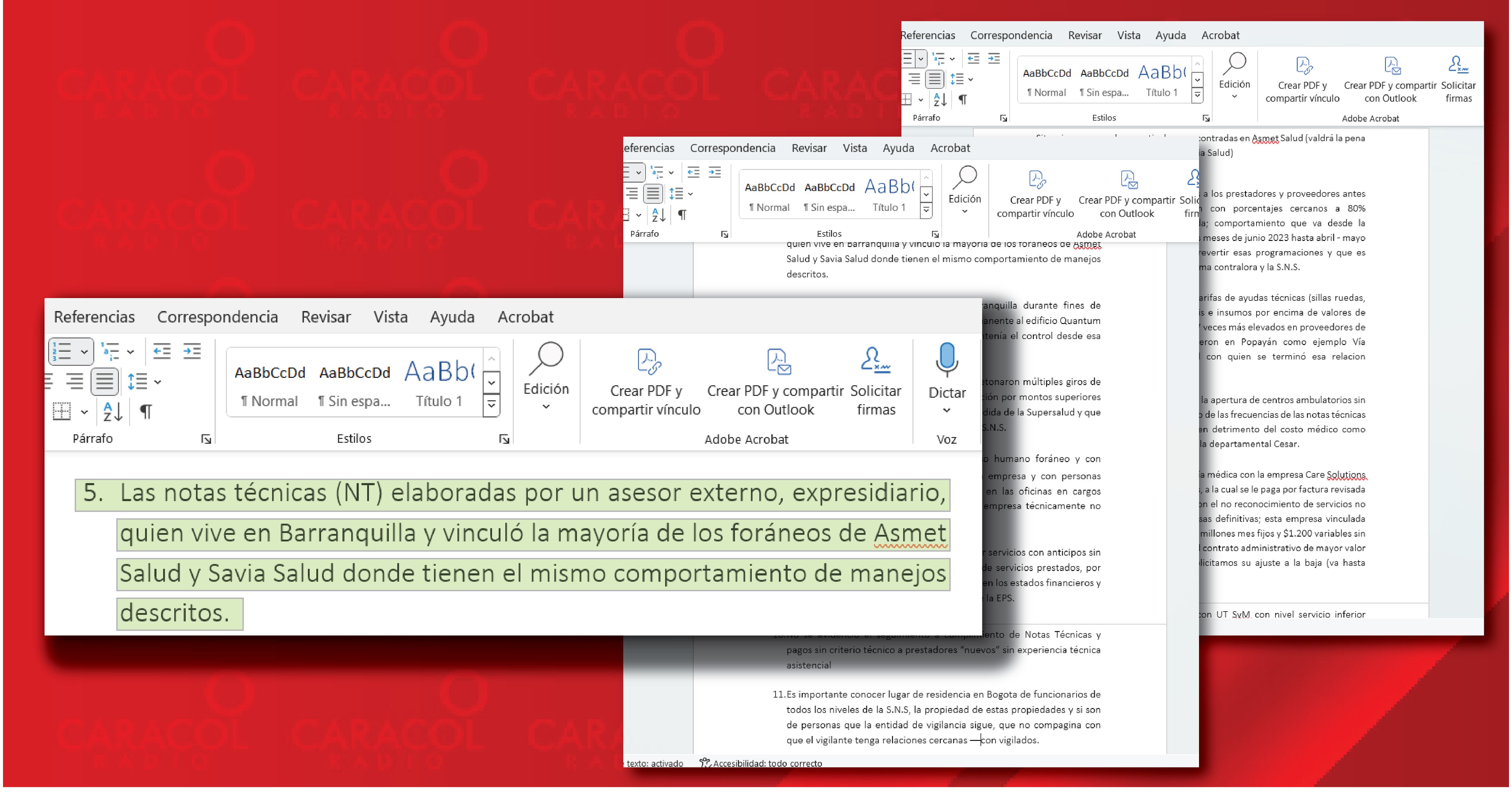 “#5. Las notas técnicas (NT) elaboradas por un asesor externo, expresidiario, quien vive en Barranquilla y vinculó la mayoría de los foráneos de Asmet Salud y Savia Salud donde tienen el mismo comportamiento de manejos descritos”. ((Ver documento))