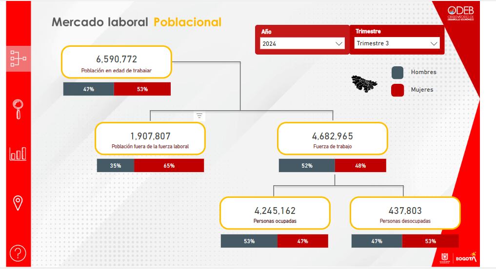 Cifras de la Alcaldía señalan que el mercado laboral poblacional en la capital para el tercer trimestre de este 2024 se compone así: