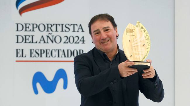 COL500. BOGOTÁ. (COLOMBIA), 11/12/2024.- El director técnico de la selección Colombia de fútbol, Néstor Lorenzo, recibe el galardón a la mejor selección durante la entrega de premios del Deportista del Año del diario El Espectador, este miércoles en Bogotá (Colombia). El gimnasta Ángel Barajas, ganador de una medalla de plata en los Juegos Olímpicos de París, fue elegido como deportista del año en Colombia por el diario El Espectador en una ceremonia realizada en Bogotá. EFE/Mauricio Dueñas Castañeda / Mauricio Dueñas Castañeda (EFE)