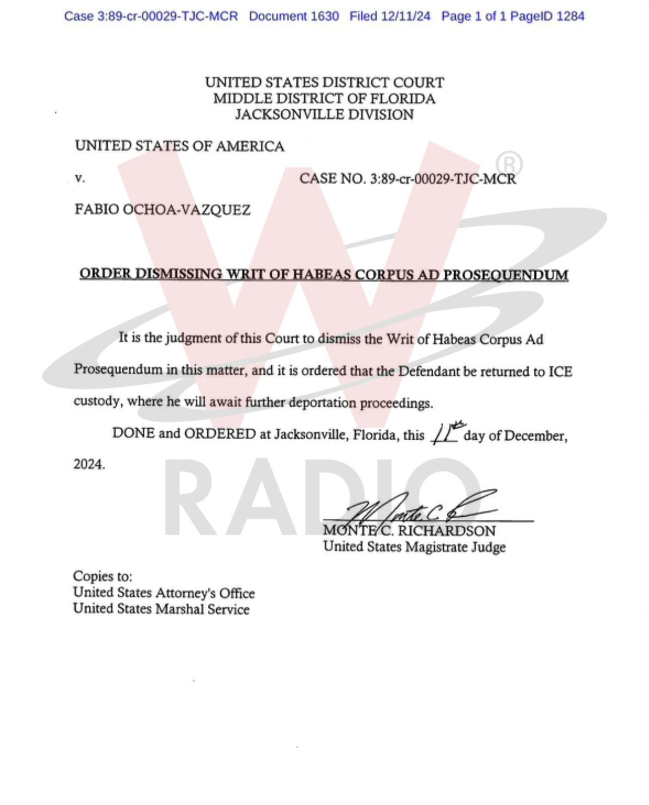 Ahora, en un documento se conoció que finalmente el juez desestimó el requerimiento que tenía Fabio Ochoa en Florida y ordenó que avance el proceso de deportación, como había anticipado este medio.