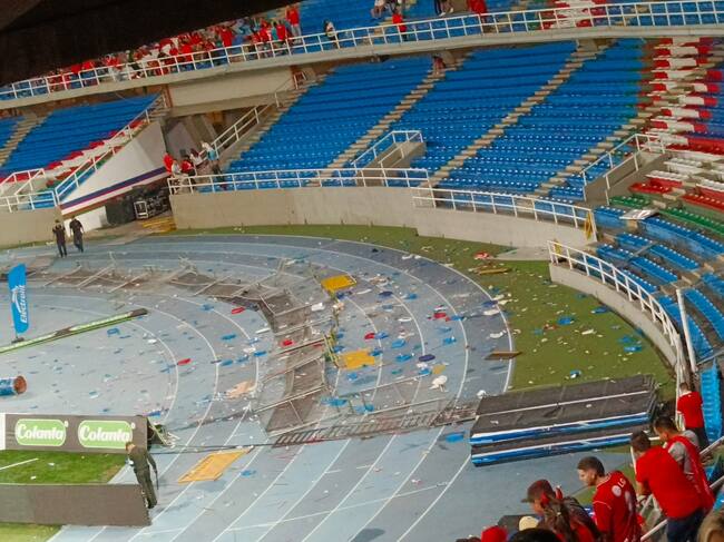 Intensos momentos se vivieron en el Estadio Pascual Guerrero por los disturbios por parte de las barras bravas del América que iniciaron en la tribuna sur con estallidos de pólvora que provocó la finalización del partido de la final de Copa contra Atlético Nacional.
