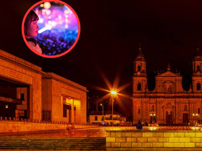 Plaza de Bolívar y mujer mirando luces navideñas (Getty Images)