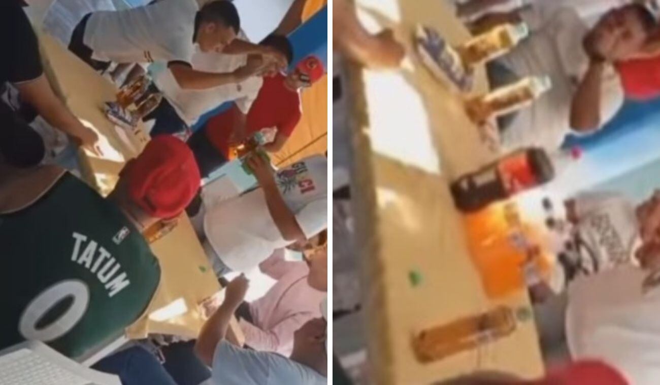 En el material de video se evidenció que estaban sirviendo gaseosa Coca Cola diluida en botellas de agua, supuestamente como si estuvieran tomando bebidas alcohólicas.