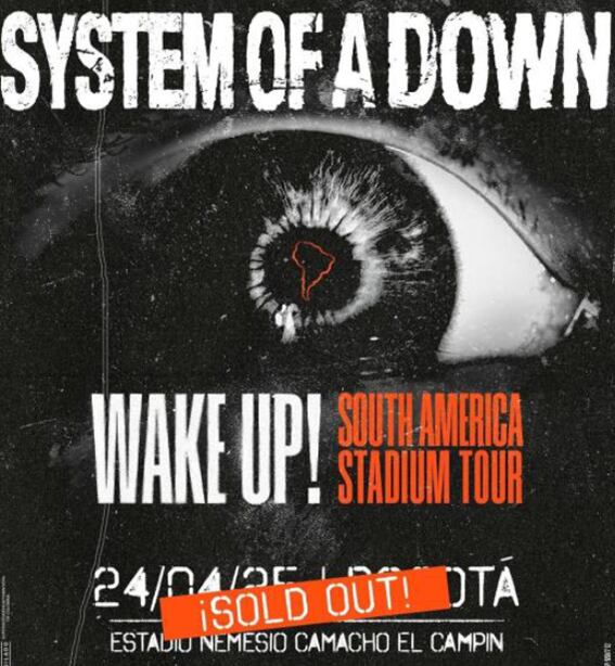 Breakfast Live, anuncia el sold out del concierto de System of a Down, que tendrá lugar el próximo 24 de abril de 2025 en el Estadio El Campín de Bogotá.