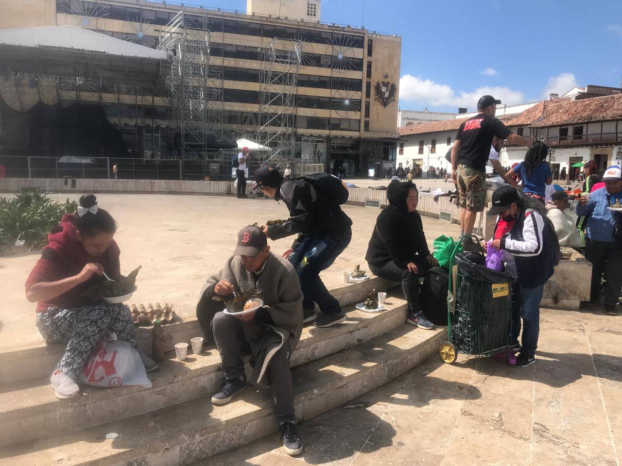 En Tunja, todos los miércoles, a la hora del almuerzo, se reúne un grupo de amigos que nació en la pandemia con el fin de proveer almuerzo a los habitantes de la calle, pero hoy, martes 24 de diciembre, entregaron un alimento especial, un tamal, además de ropa y pan con chocolate.