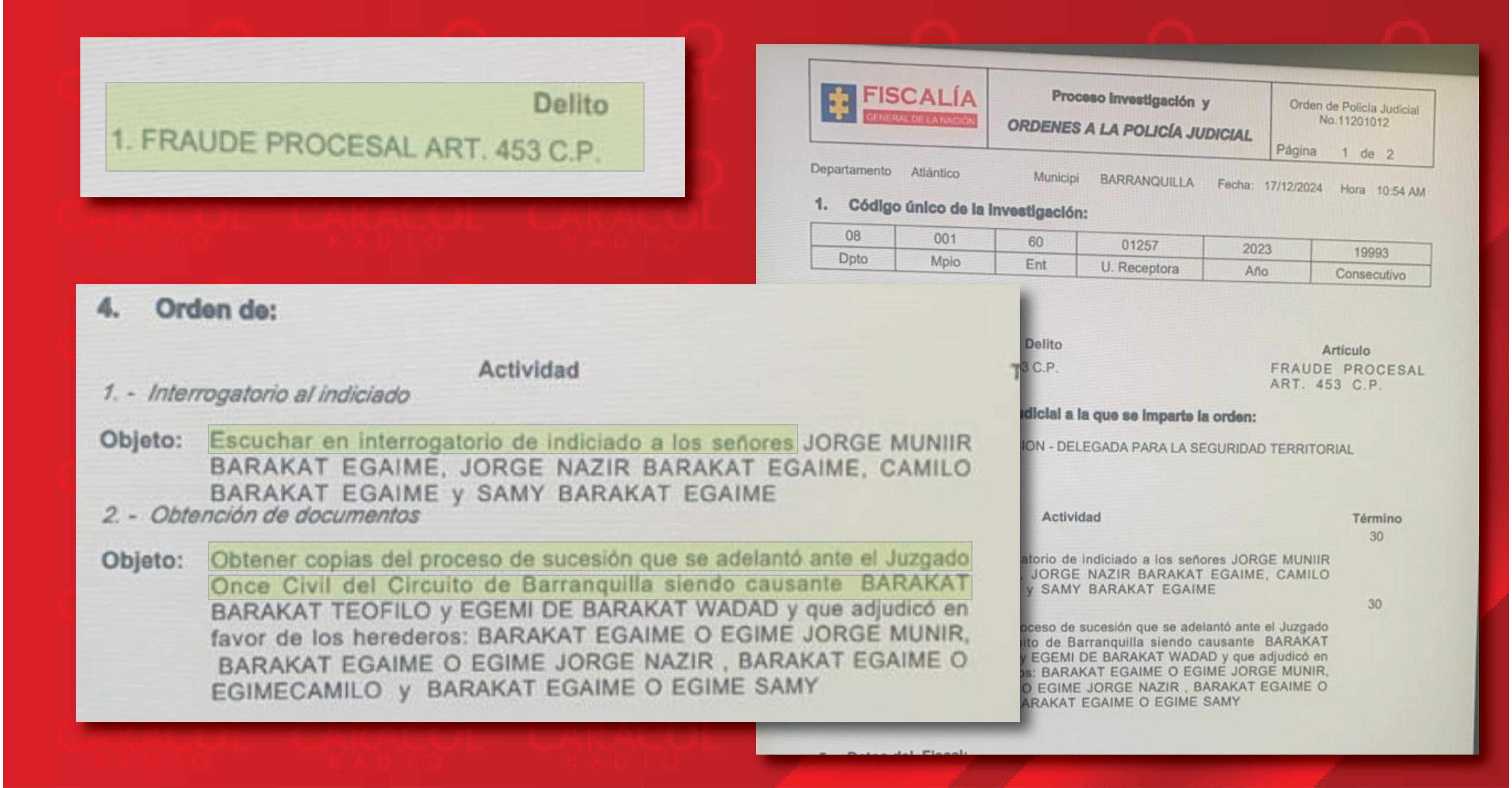 Se conoció una orden a Policía Judicial con fecha del 17 de diciembre de 2024. El documento ordena escuchar en interrogatorio a cuatro de los familiares del abuelo y también ordena obtener una copia del proceso del juicio de sucesión que se adelantó ante un juzgado de Barranquilla. ((ver documento))