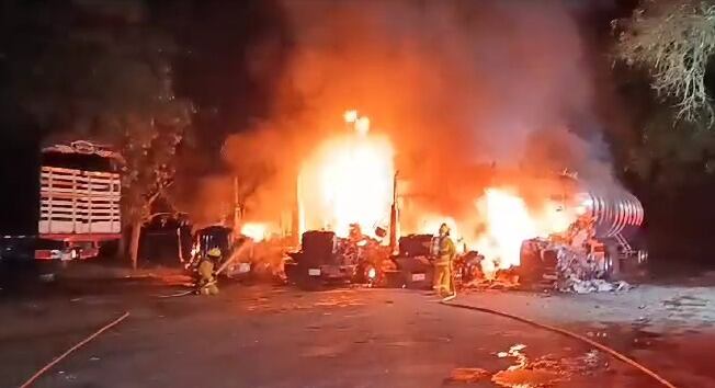 Incendio consumió cuatro tractomulas en la vía Bucaramanga - Barrancabermeja