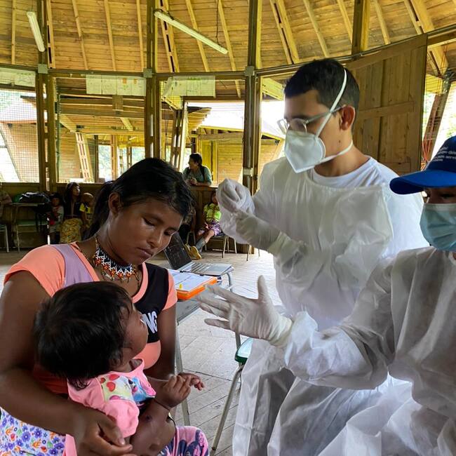 Desde hace más de dos semanas, médicos, enfermeros, vacunadores y nutricionistas trabajan en el resguardo Valle de Pérdidas, habitado por indígenas Emberá nómadas que subsisten de actividades agrícolas. Para garantizar una atención efectiva, el equipo cuenta con el apoyo de traductores de español a la lengua Emberá y de epidemiólogos que lideran las labores.