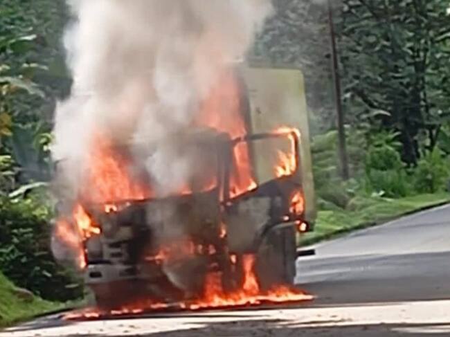En las últimas horas, El ELN quemó un camión de transporte de alimentos en la carretera entre Pereira y Quibdó, a pocos kilómetros del municipio de Tadó. De acuerdo al reporte del coronel José Urrego, comandante de la Policía de Chocó, el hecho fue cometido por entre 4 y 6 hombres.