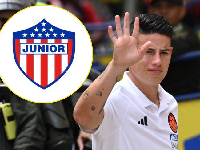 Junior de Barranquilla y James Rodríguez. Foto: Junior de Baranquilla / (Photo by RAUL ARBOLEDA/AFP via Getty Images)