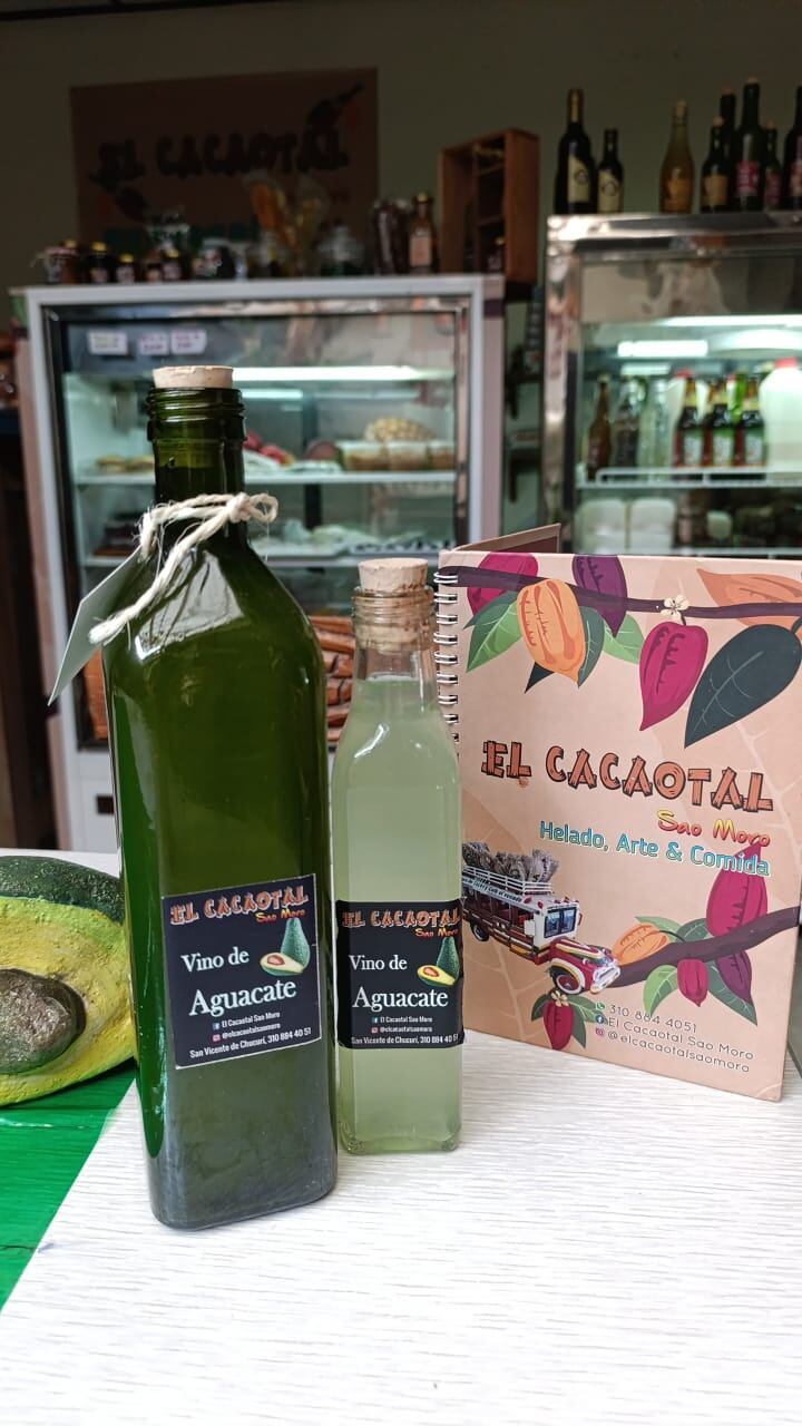 Y si bien los helados, las malteadas y el guarapo son las ofertas más conocidas, El Cacaotal también se ha aventurado a crear una bebida única que ha sorprendido a más de uno: el vino de aguacate.