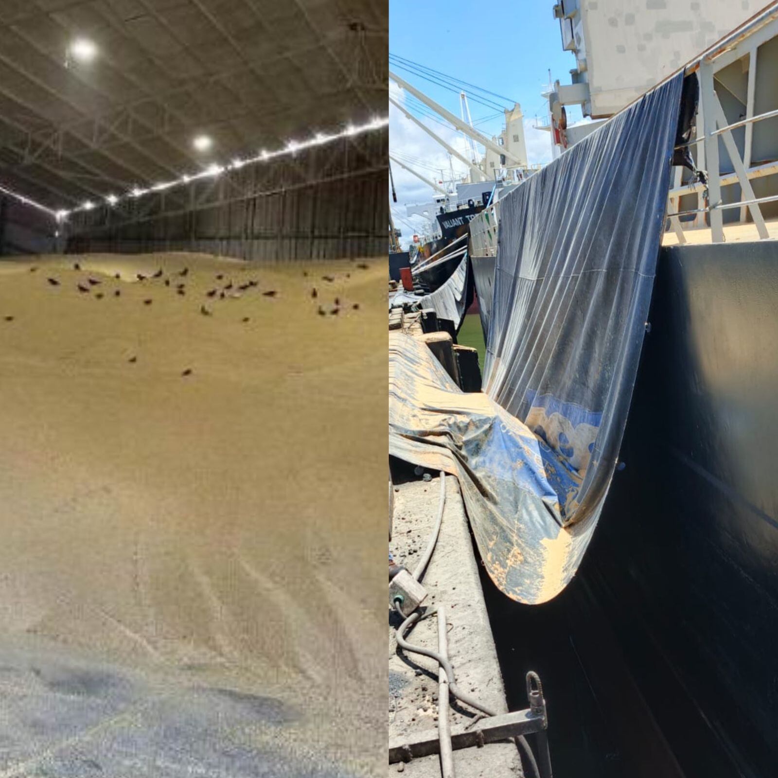 A esto se suma el mal manejo del sistema de transporte del muelle al barco a través de lonas de dichos granos, además se identificó que el plan de manejo ambiental está desactualizado desde 2002, así como estaciones de monitoreo ambiental inoperativas, aguas estancadas y abandono ambiental.