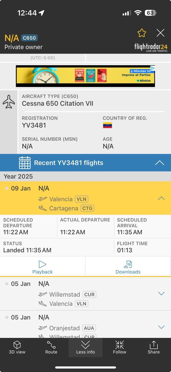 Lo que este medio pudo confirmar es que este segundo avión, que partió de la ciudad venezolana de Valencia, era una aeronave tipo Cessna 650 Citation VII.