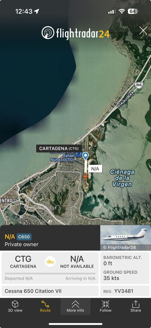 Se trata de una aeronave, de matrícula YV3481, que habría aterrizado en el aeropuerto de Cartagena Rafael Núñez.