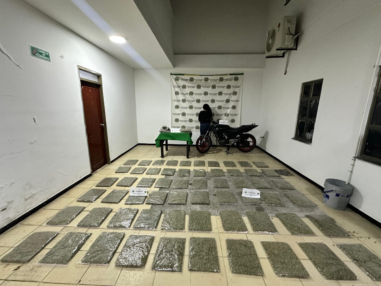 La mujer cargaba un bolso con 63 paquetes que corresponden a 33 kilos de marihuana de los cuales se podrían producir más de 25.000 dosis para ser distribuido mediante la modalidad “hormigueo”.